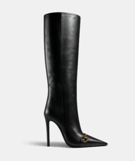 حذاء 2025 ديوريسيمو نسائي – جلد أسود لامع مع فيونكة CD ذهبية