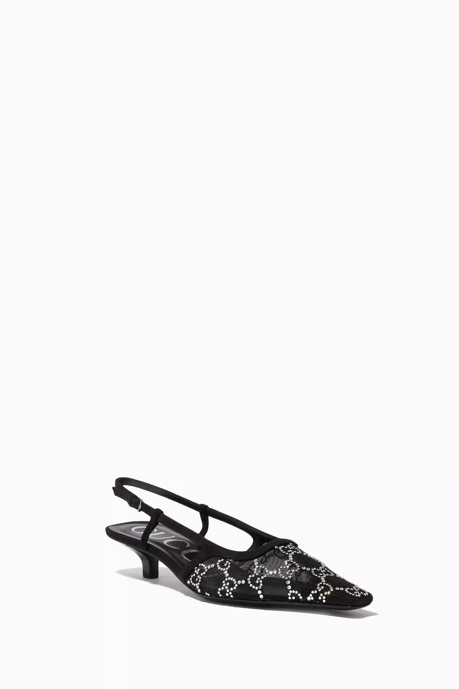 بارتفاع كعب 35 مم، المصنوع من قماش شبكي فاخر مزين بشعار GG المتداخل بالكامل.