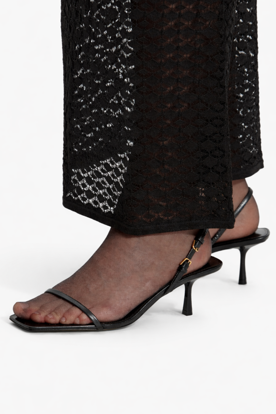كعب سان لوران اسود – كعب مفتوح 56 مم – جلد وساتان فاخر