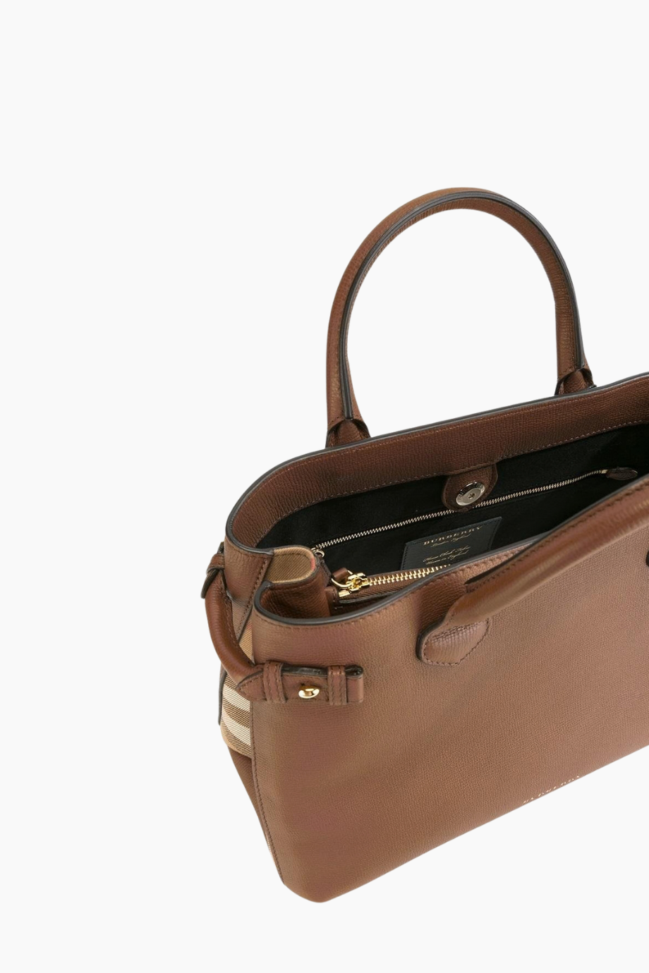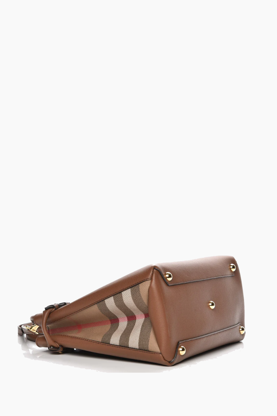 مصنوعة من جلد العجل الفاخر ومزينة بنقشة House Check الكلاسيكية، مع مقابض جلدية ملفوفة أنيقة تمنح الحقيبة مظهراً راقياً.