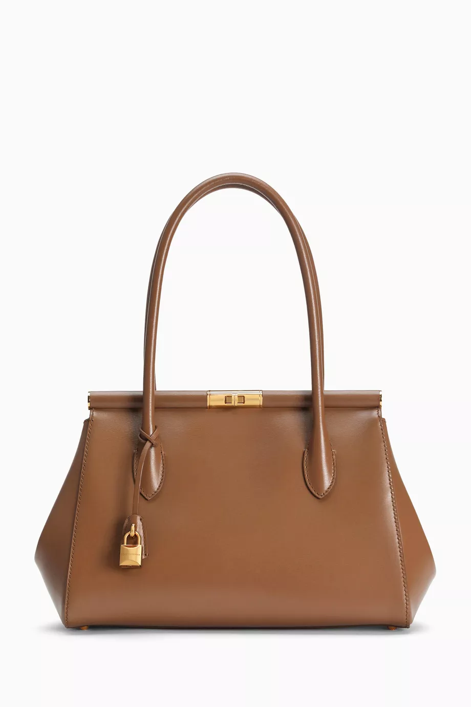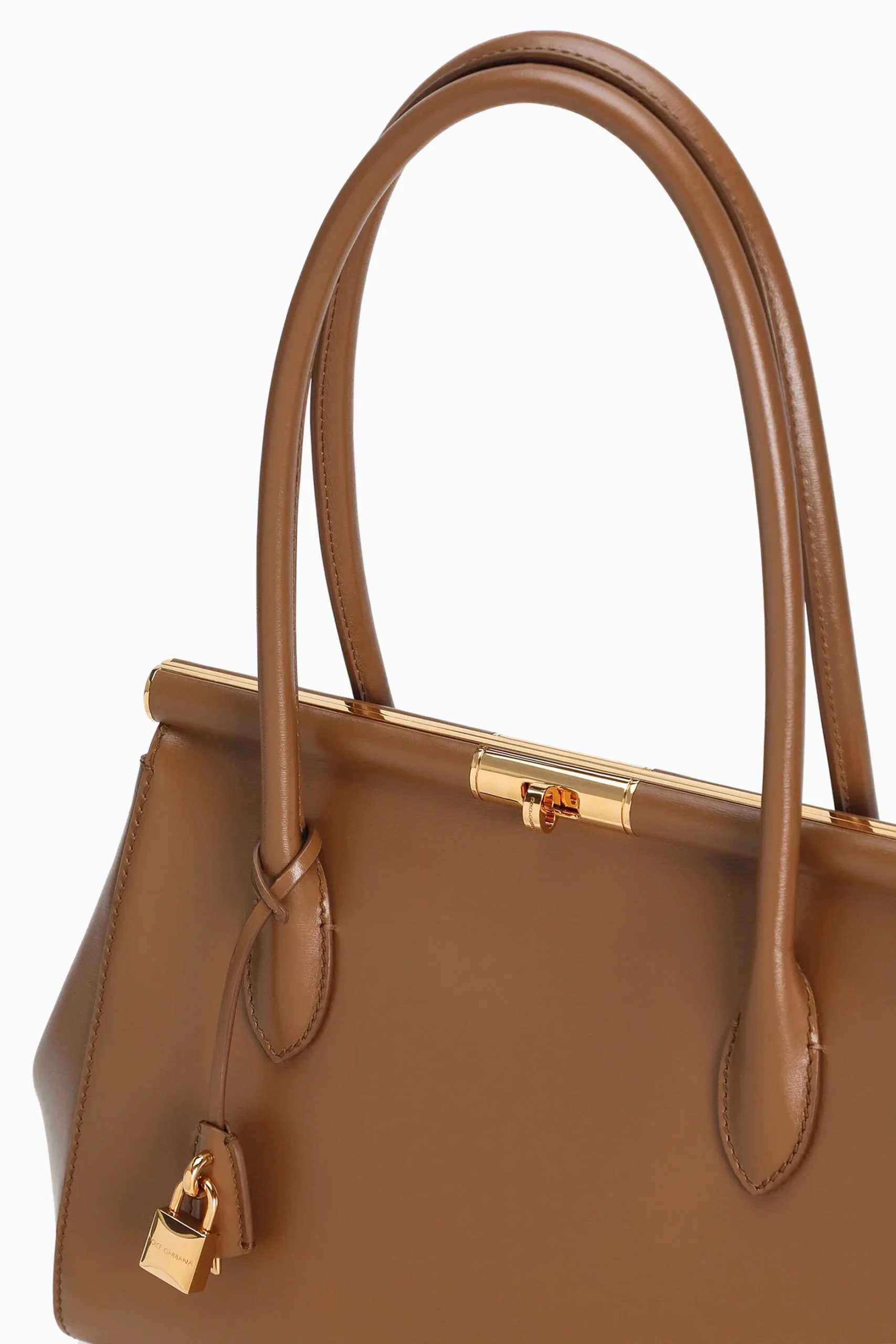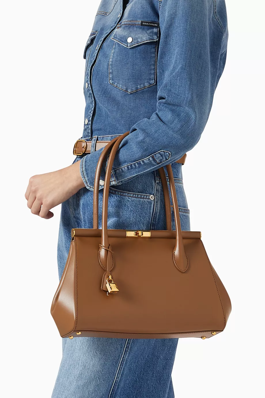 يزيّن الحقيبة قفل دوّار معدني مطلي بالذهب في منتصف الواجهة الأمامية يحمل بصمة Dolce & Gabbana المميزة.