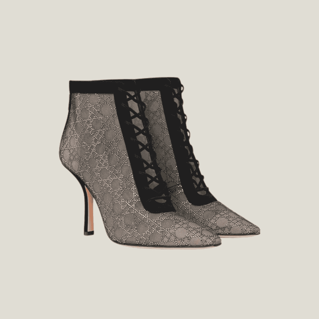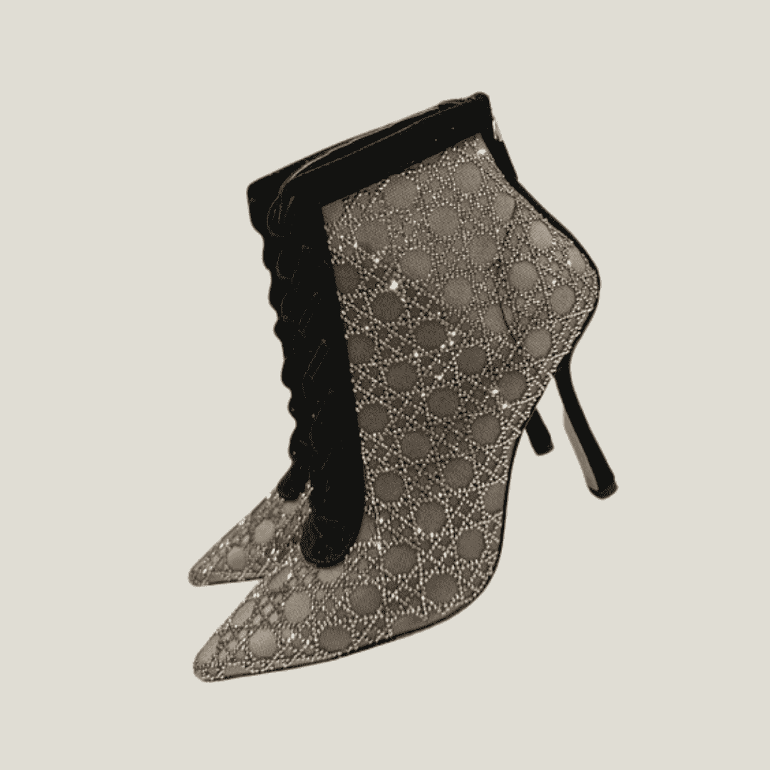 بوت ديور الشبكي المزخرف ليس مجرد حذاء؛ إنه تحفة فنية تتحرك معك. يجمع بين جرأة التصميم الشفاف وروعة تفاصيل دار ديور الفرنسية العريقة.