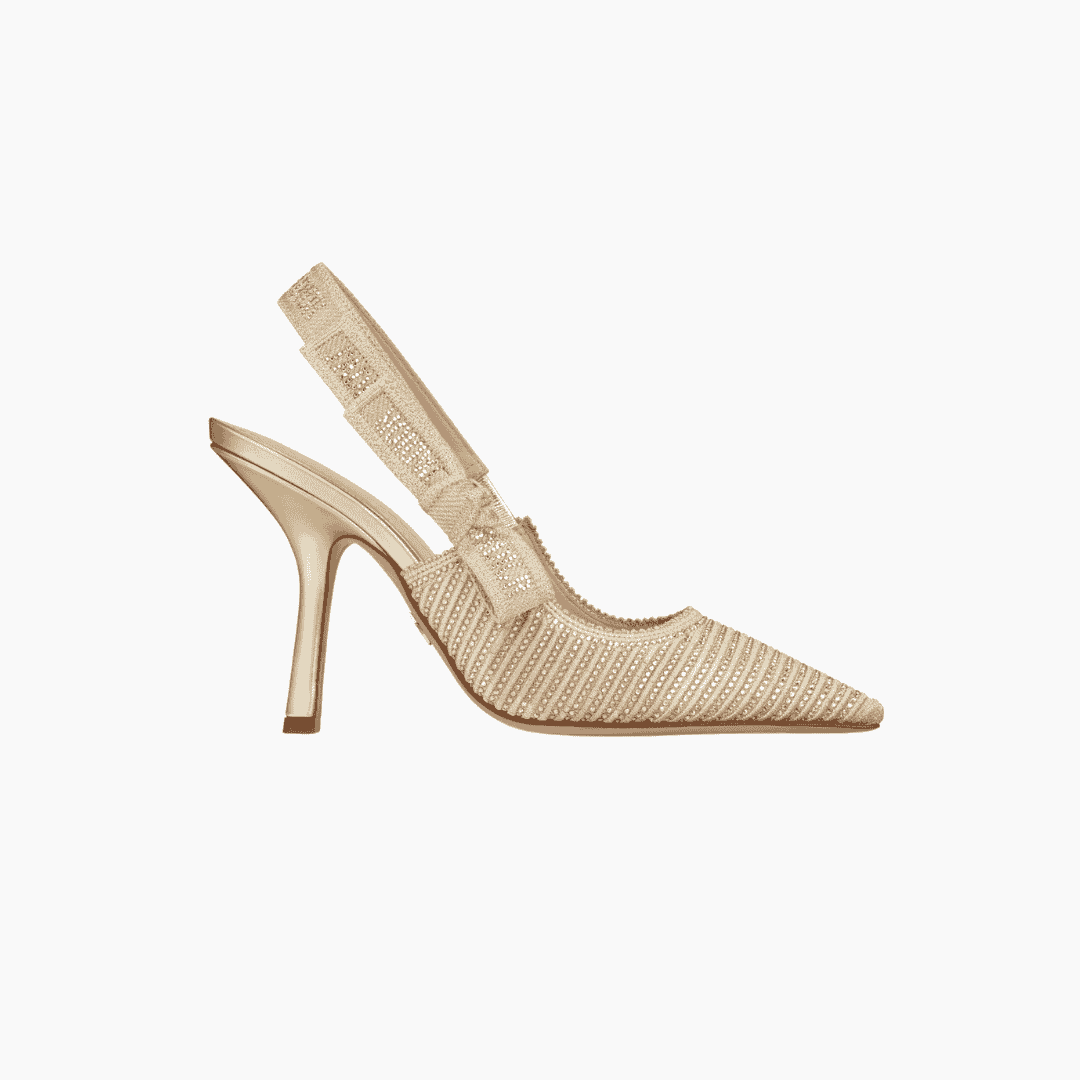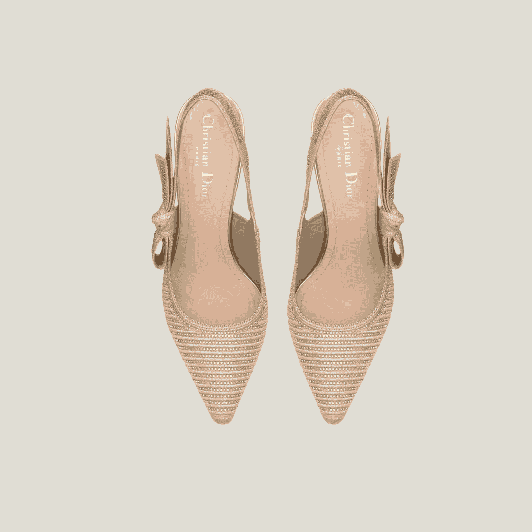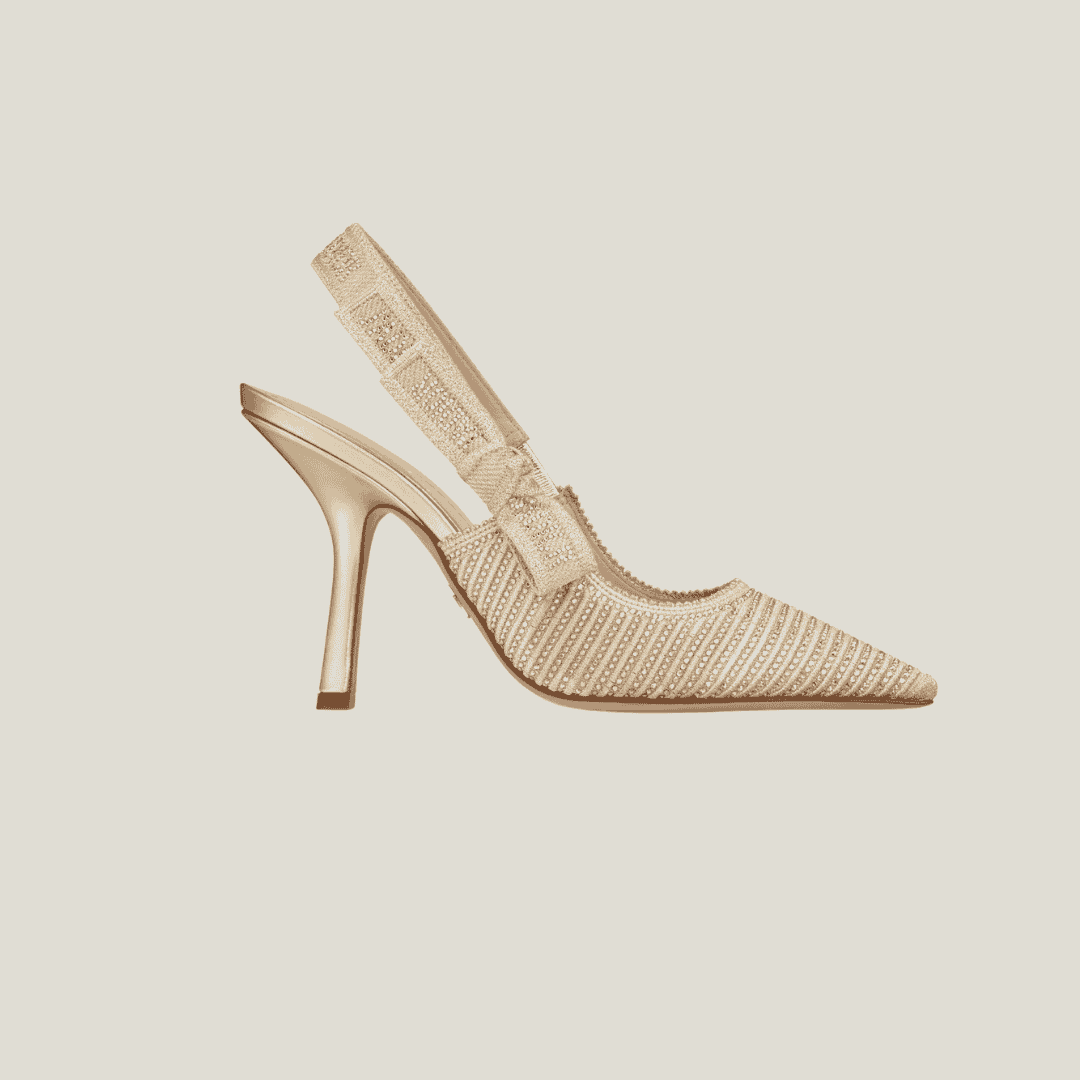 يتميز الحذاء بمقدمة مدببة راقية وكعب رفيع متوازن يضفي طولاً ورشاقة، بالإضافة إلى شريط خلفي مرن مطرّز بشعار J’ADIOR الأيقوني.