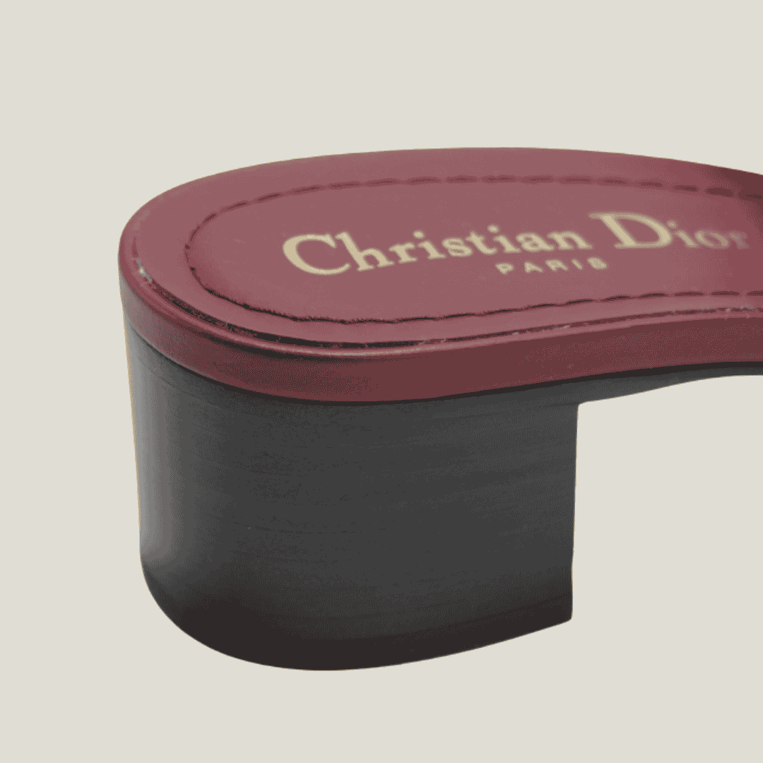 حذاء ديور 30 مونتين المفتوح من الأمام مصنوع من جلد العجل العنّابي الفاخر، ومزيّن بتوقيع CD الذهبي مع لؤلؤة راتنجية بيضاء تمنح لمسة أنثوية مترفة. يأتي بكعب عريض بارتفاع 3.5 سم ليمنحك ثباتًا وأناقة كلاسيكية تناسب الإطلالات اليومية والمناسبات الراقية