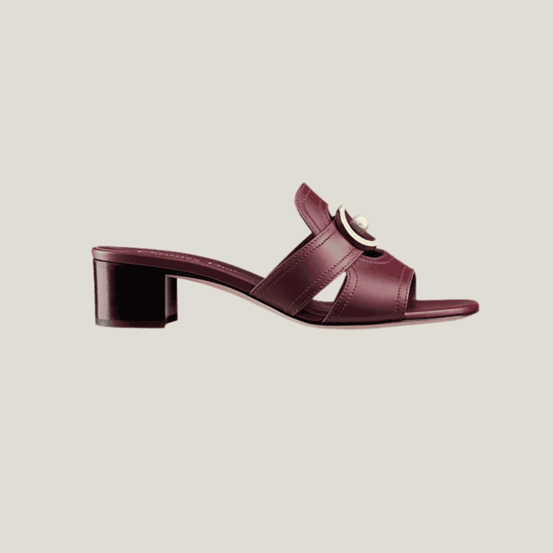 حذاء ديور 30 مونتين مفتوح من الأمام – جلد عجل عنّابي مع توقيع CD ولؤلؤة راتنج وكعب 3.5 سم