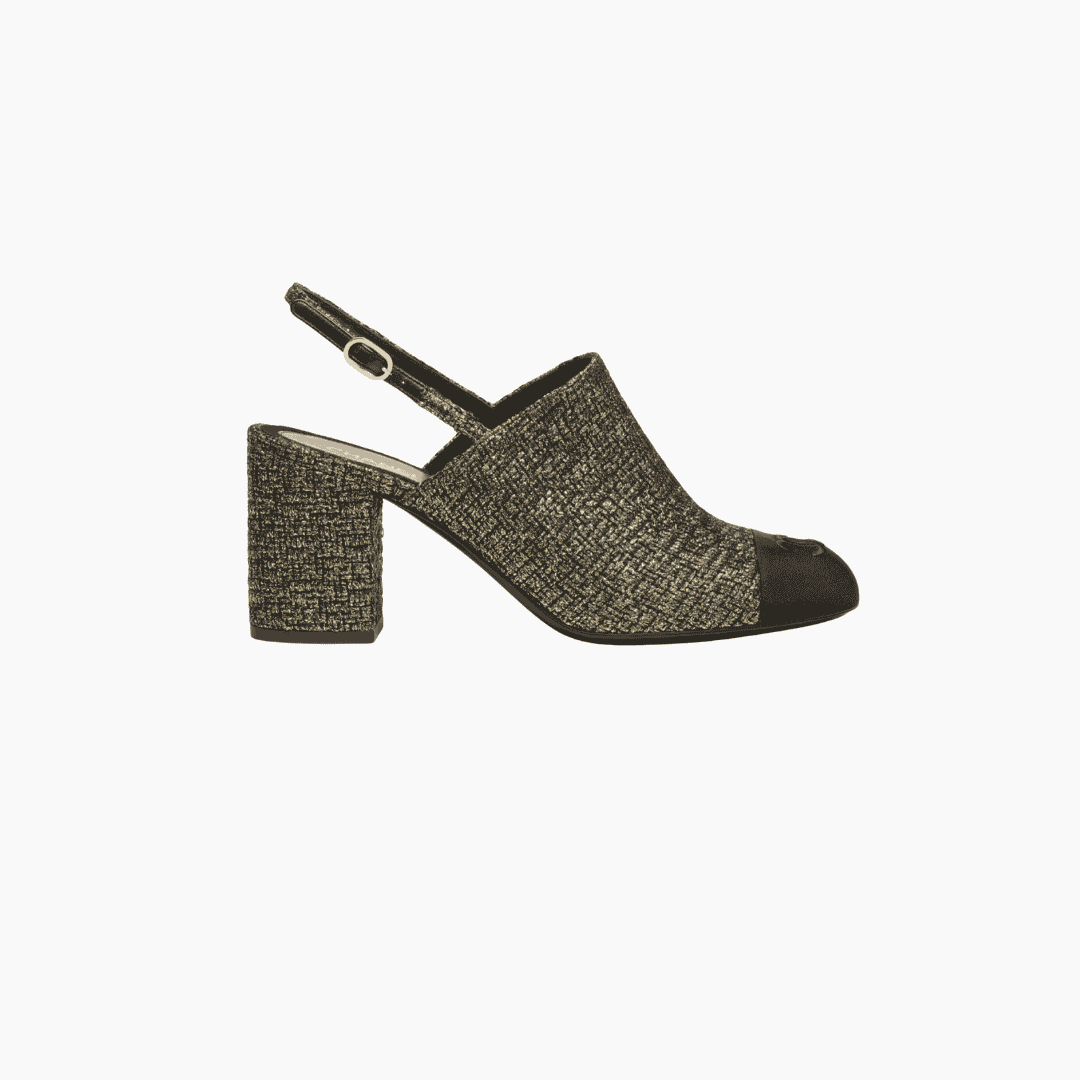 حذاء شانيل كعب مفتوح من التويد | مجموعة خريف 2025