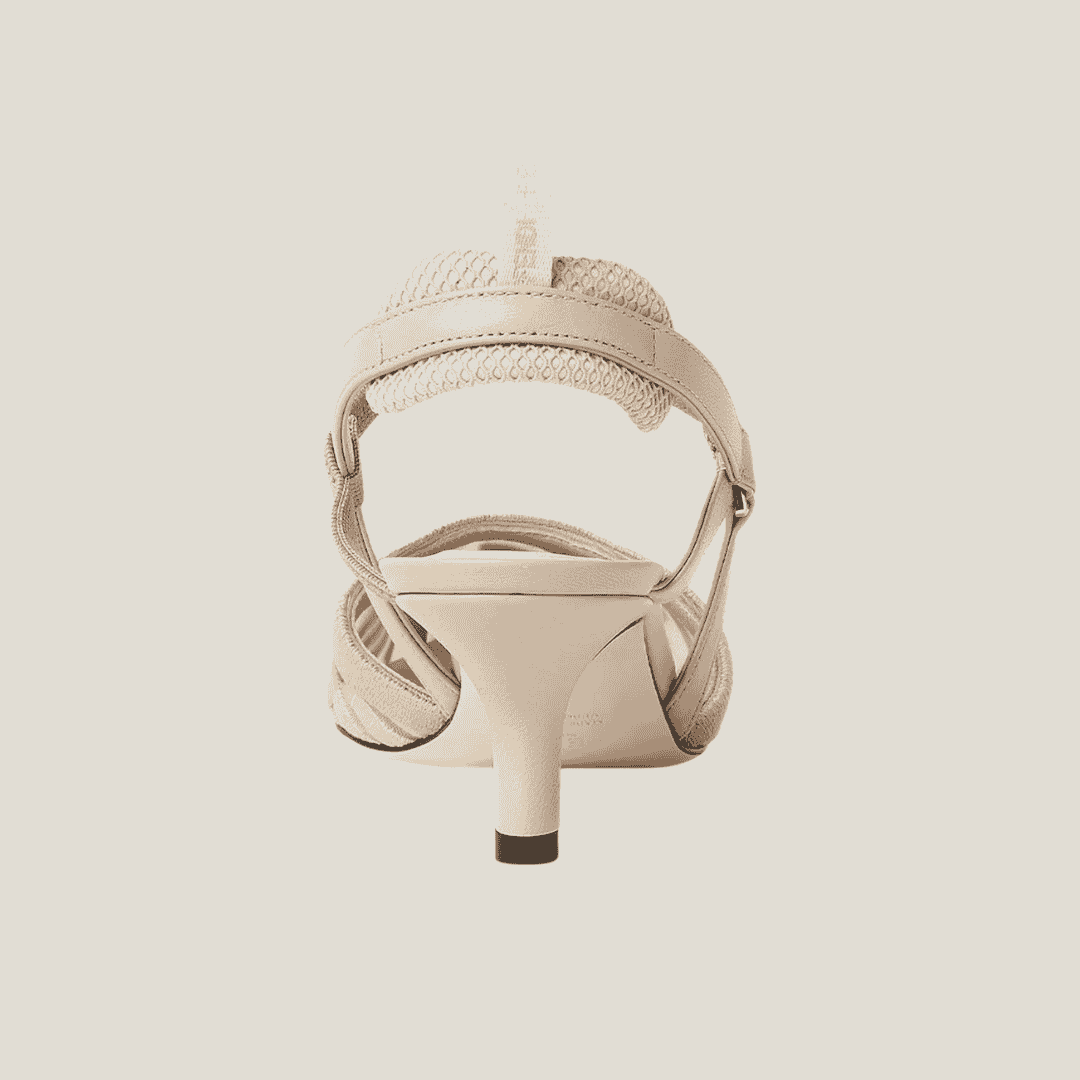 تفاصيل تضمن الإتقان: الحزام الخلفي المنزلق يسهل ضبط المقاس بدقة، و حزام الكاحل يمنح ثباتاً إضافياً، بينما المقدمة المدببة تضيف لمسة أنثوية كلاسيكية.