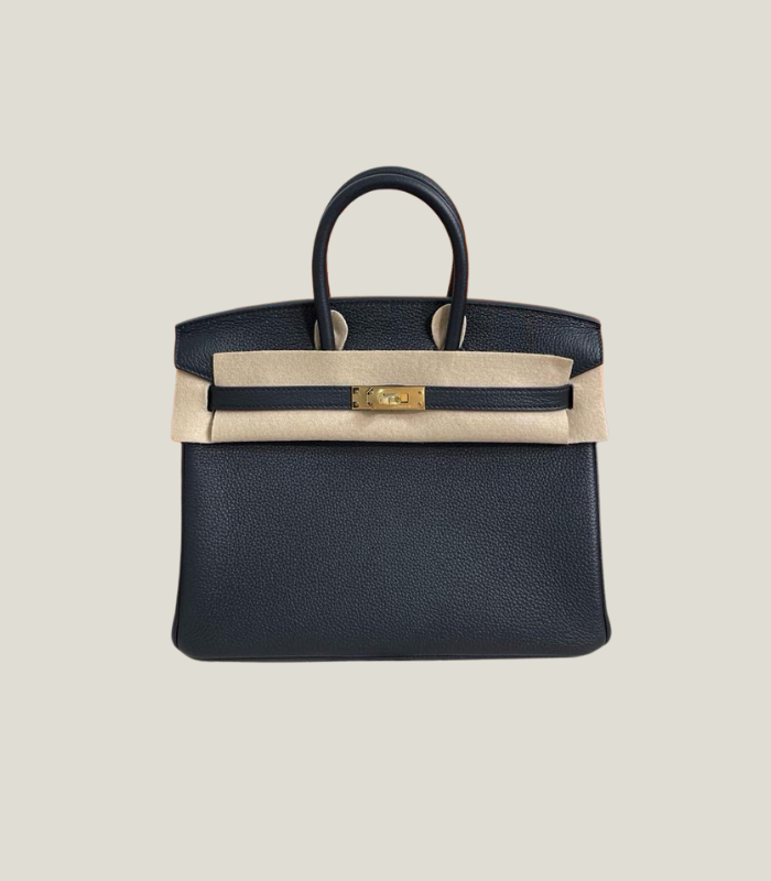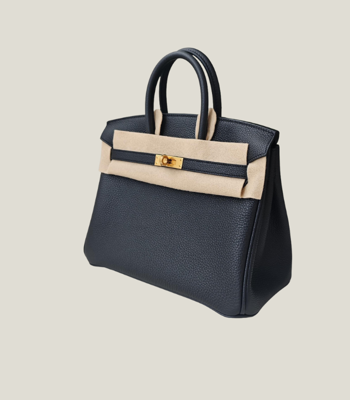 تُعد حقيبة Hermès Birkin 25 من أشهر وأرقى قطع الحقائب في عالم الموضة، وتأتي هذه النسخة بلون أسود كلاسيكي مصنوع من جلد Togo المعروف بملمسه الناعم وقوة تحمّله ومظهره الفاخر. يتميز جلد توغو بقدرته على الحفاظ على شكله مع مرور الوقت، مما يجعل الحقيبة مناسبة للاستخدام اليومي دون التأثير على أناقتها.
