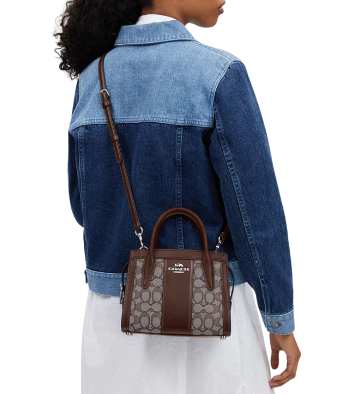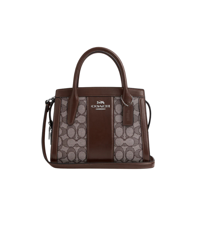 تميزي بالأناقة مع شنطة كوتش أندريا كاريال المصنوعة من الجاكار المميز وجلد العجل الفاخر، مع جيب داخلي متعدد الوظائف وسحاب علوي للإغلاق.