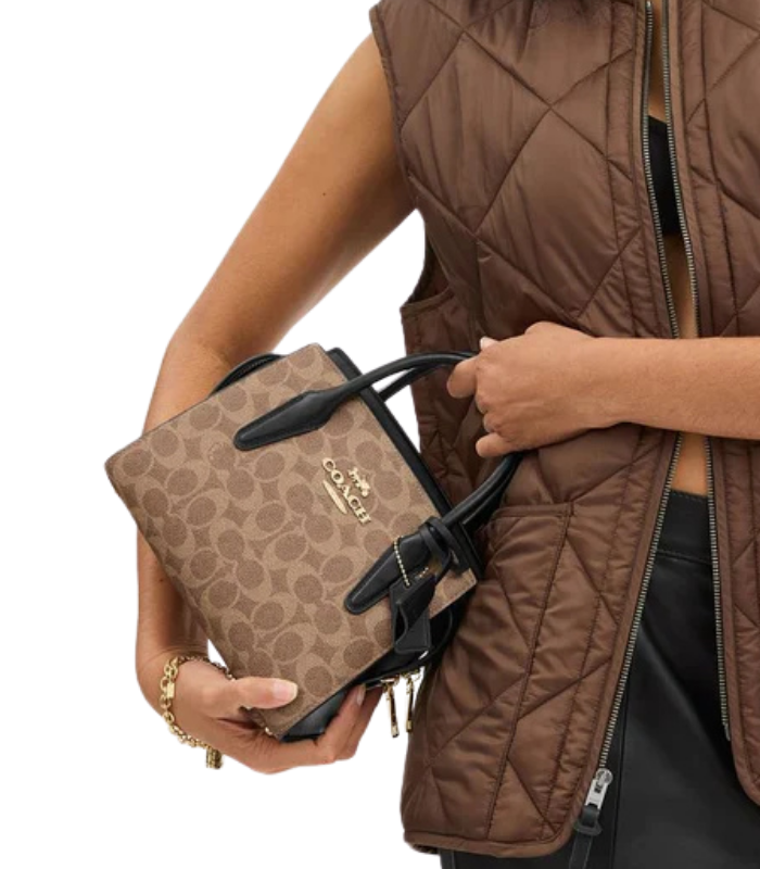 استمتعي بالعملية والفخامة في آن واحد مع شنطة كوتش أندريا كاريال من القماش المميز.