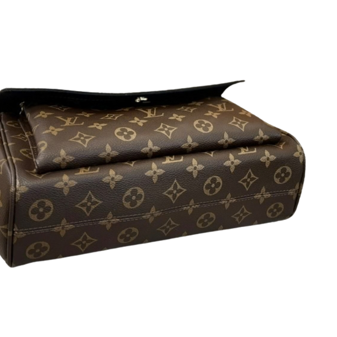 - المادة: قماش القماشة المقاوم (Coated Canvas) بنقش المونوغرام، مع حواف وجوانب من الجلد الطبيعي.